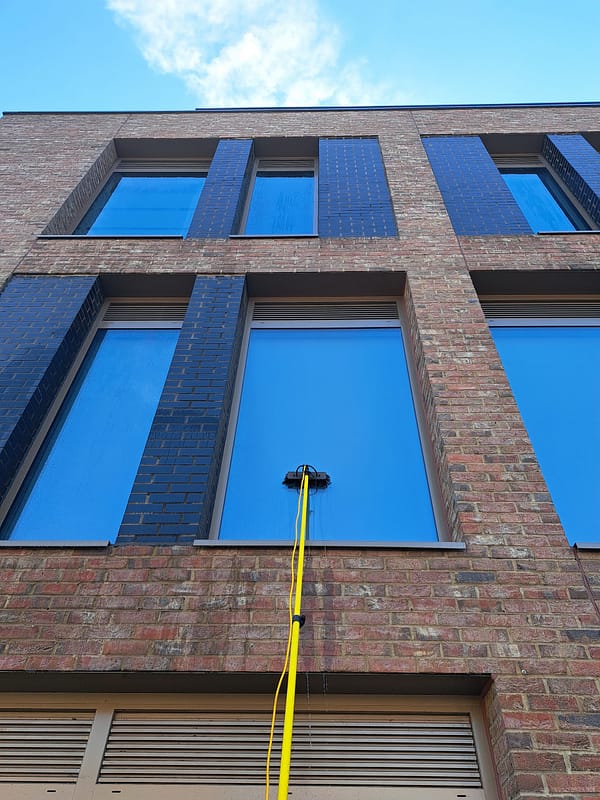 - High-Reach Capability: Our Water Fed Pole System can clean windows up to 45 feet high safely and efficiently, perfect for multi-story buildings.